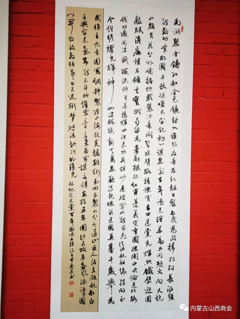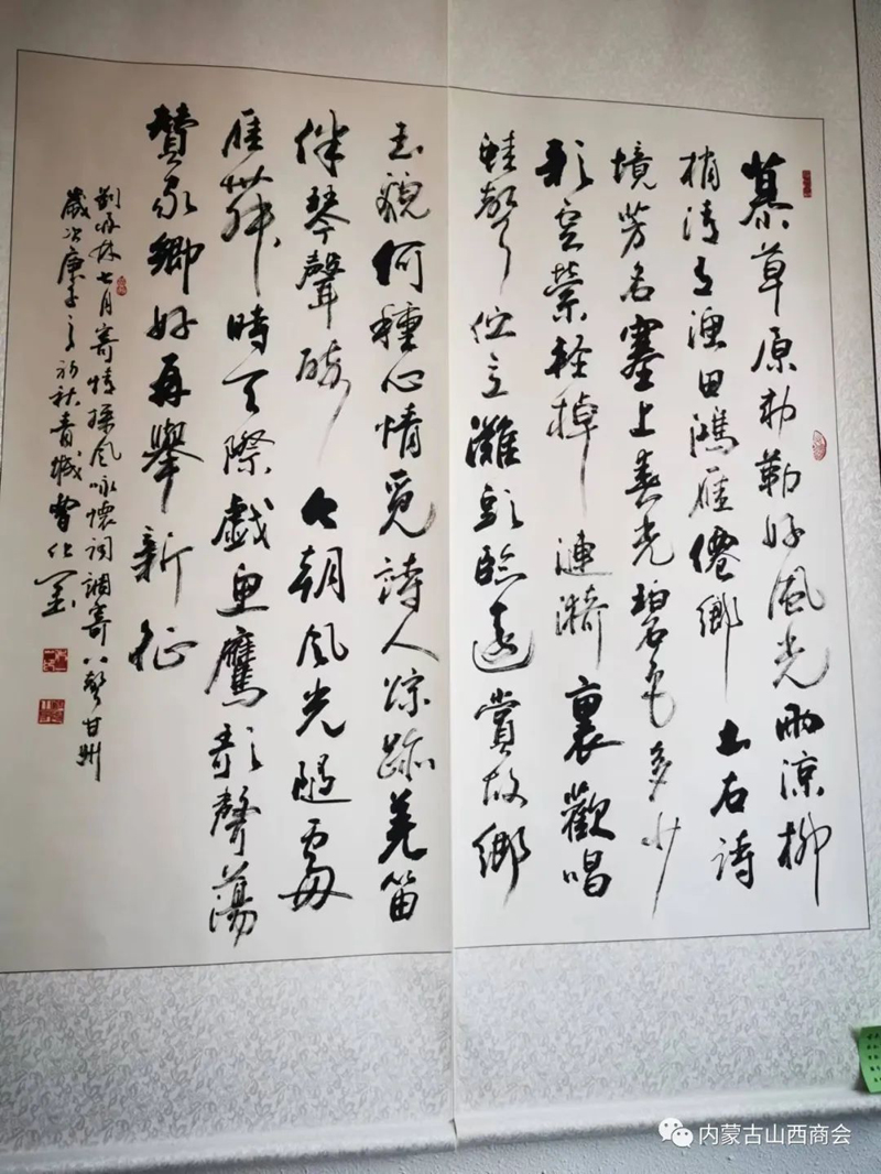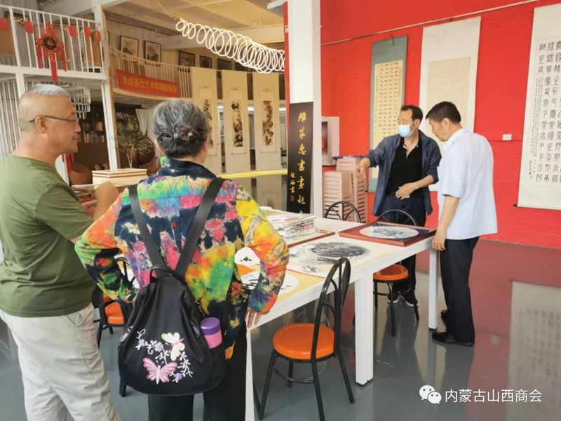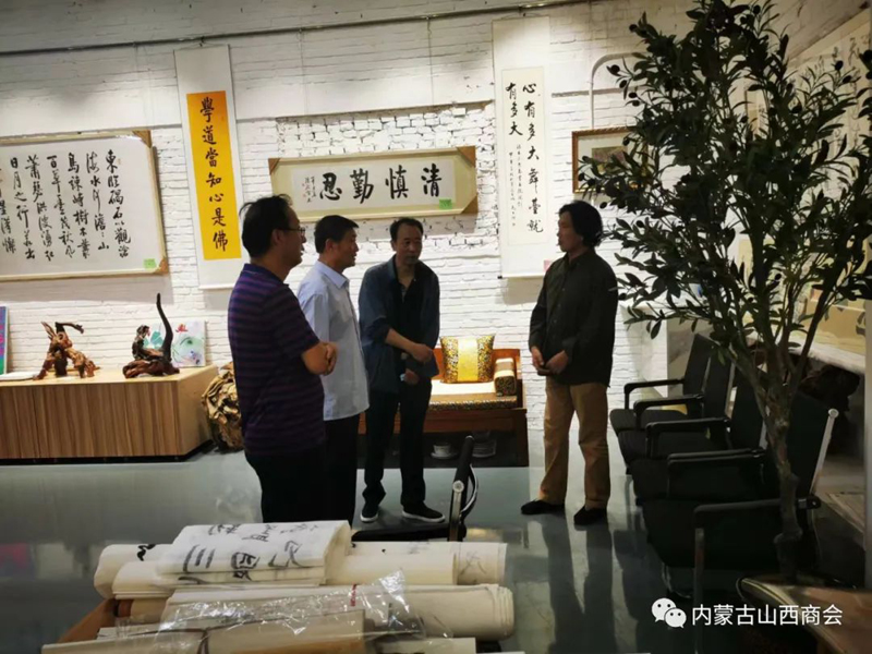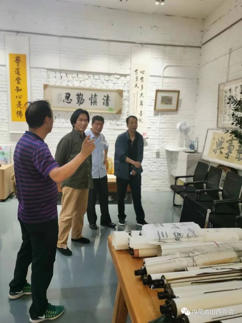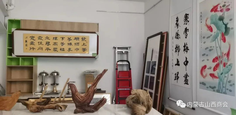 2022年6月17日上午,商会常务副会长龚占轶、监事会主席李润泽赴内蒙古山西商会古木逢春书画院观展。商会副会长、书画院院长梁树荣,书画院值班书画老师富文华、刘元热情接待了商会领导,并就书画院的基本情况做了详细介绍,陪同商会领导一起观看了书画院几个展厅的书法书画作品。 内蒙古山西商会古木逢春书画院成立八年以来,做了大量的工作,为普及书法艺术,弘扬中华文化传统美德做出了积极的贡献,为众多书法爱好人士和书法家提供了施展书画才艺的广阔平台,吸收了众多的书法艺术家,加入了书画院。目前书画院收藏各类书法作品两万多件和上千件根雕艺术作品,开设了土右旗大雁滩创作基地和土右旗根雕作品展览馆,目前书画院展厅占地近三千平米,近期举办了三次大型书画作品展览。经过近几个月的精心策划,成立了内蒙古山西商会古木逢春书画院维家惠书画超市,并已开业运营。近期接待了来自社会各界书画爱好者的参观和选购。书画院专家云集,作品琳琅满目,超市环境布置优雅、书香、整洁、美观、琴声悠扬。超市书画作品从几十元起售,到几百元几千元,能够满足不同客户和书画爱好者的需求,还可根据客户自身的需要,可选题、选字、选画、选人、选规格尺寸定制。超市努力打造顾客进得来、看得上、买得起的文化市场,为丰富广大市民的文化生活提供优惠、便捷、高质量的艺术作品,为培养和扶植呼和浩特市乃至内蒙古地区的文化产业市场探索新的文化惠民途径。 古木逢春书画院寄时代大雅,借胡杨寓意,集书画贤达,立于青城八载也。有梁氏树荣者,多年来辗转神州南北,喜根艺,乐书画,好钻研,多收藏,广交友,为弘扬中华文化乐此不疲。百余位志同道合院友相聚一起搞创作、办讲座、开培训、做展览……努力让阳春白雪的书画艺术走向寻常百姓家。为树立中华文化自信尽绵薄之力,让荣获区级非遗传承再绽放异彩。 古木逢春书画院现有多个不同功能展厅,新设书画超市,琳琅满目,墨香承雅韵,大美藏心间。宜收藏,宜赠友,宜装饰,平添文雅气息,室内熠熠生辉。总有一幅作品能满足您的需求和喜好,走进书画院,浏览超市艺术品,总能让您有意外的收获和艺术的享受。古木逢春书画院维家惠书画超市真诚欢迎书法爱好者和各界人士光临指导,潜心研习,随意选购,为艺术作品走进千家万户提供真诚的服务。 书画院、维家惠书画超市地址:呼和浩特市回民区铁路西货场北维家惠建材市场内二楼“内蒙古山西商会古木逢春书画院”。值班(全天)老师: 富文华,电话:15047888903。 刘 元,电话:15047056149。